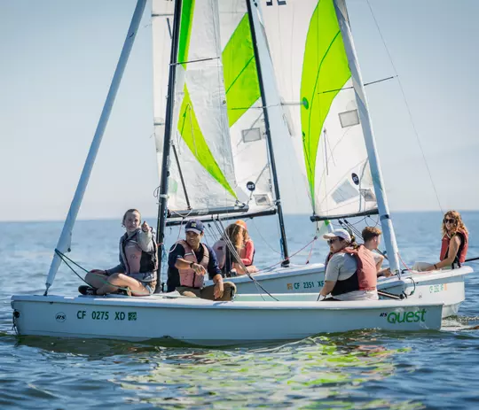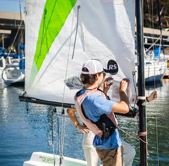 No prior experience required. Students sail RS Quest boats (2–3 students per boat).